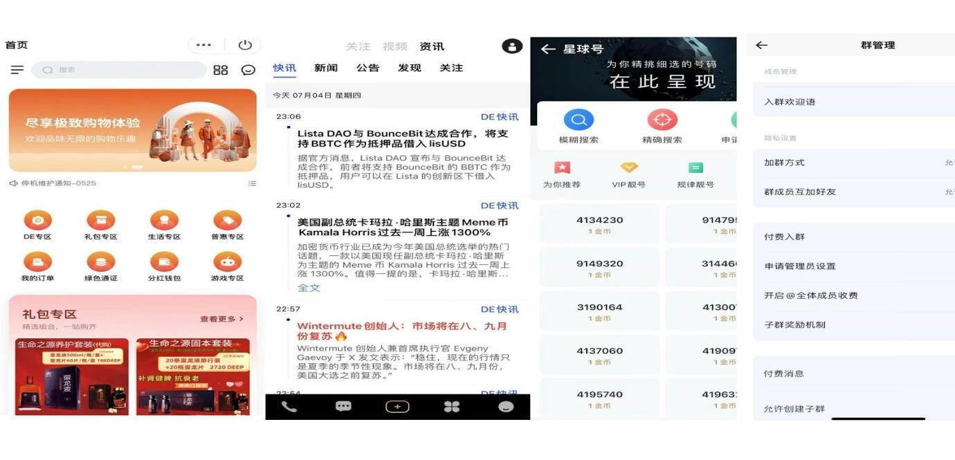 DEChats是DE公链支持的一款应用,集成了超过12种生态功能,涵盖了链上加密通话、社交互动、短视频分享和全球链上商城等,旨在为用户提供全面的一站式区块链生态体验。DEChats在群管理方面功能强大,支持子群管理和付费入群等选项,产品操作流畅,用户体验极佳。
