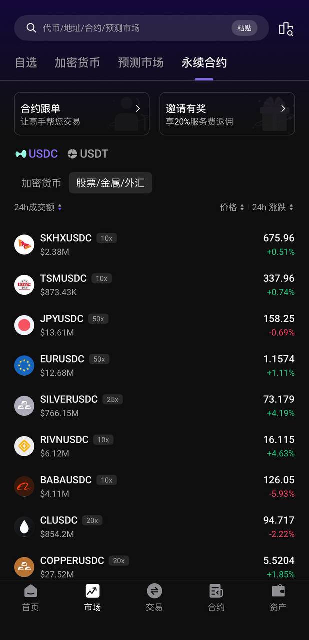 Wallet V 聚合 xStocks、aster&hyperliquid、polymarket——不用开户、不用 KYC,在手机上直接买美股、做合约、玩预测市场